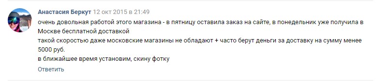 очень довольная работой этого магазина - в пятницу оставила заказ на сайте, в понедельник уже получила в Москве бесплатной доставкой