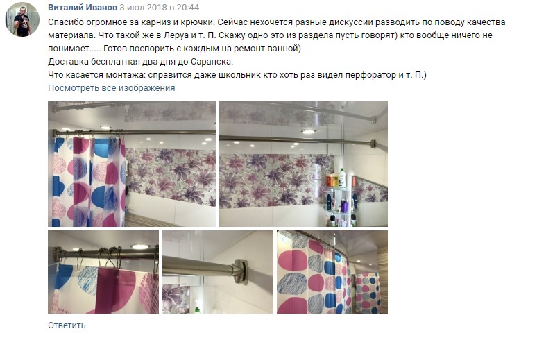 Спасибо огромное за карниз и крючки. Сейчас нехочется разные дискуссии разводить по поводу качества материала. Что такой же в Леруа и т. П. Скажу одно это из раздела пусть говорят) кто вообще ничего не понимает..... Готов поспорить с каждым на ремонт ванной)